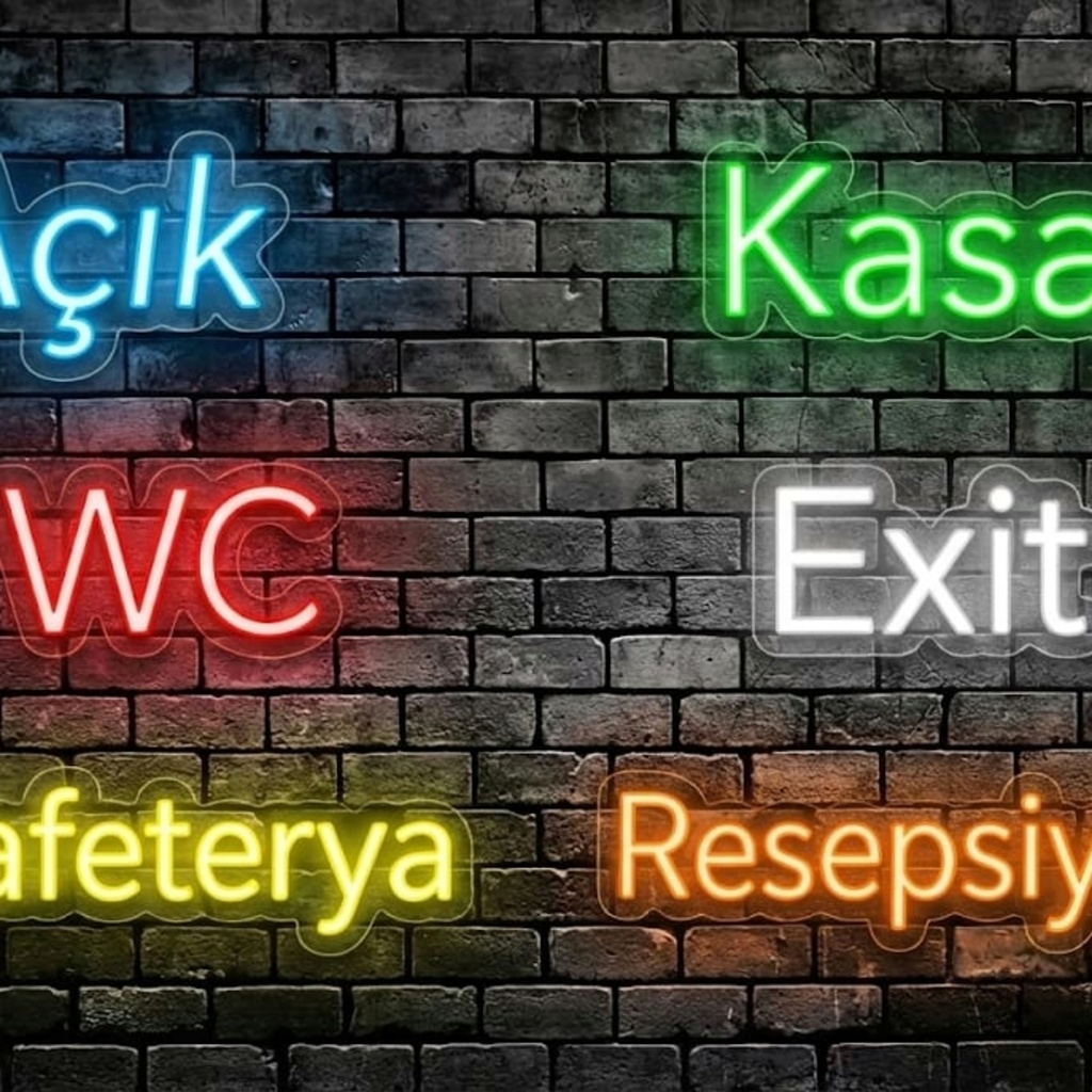 Müşterilerimize özel tasarım neon tabelalar sunuyoruz. Restoran, kafe, bar, dükkan veya ofis için çeşitli stil ve renk seçenekleriyle hizmet veriyoruz.